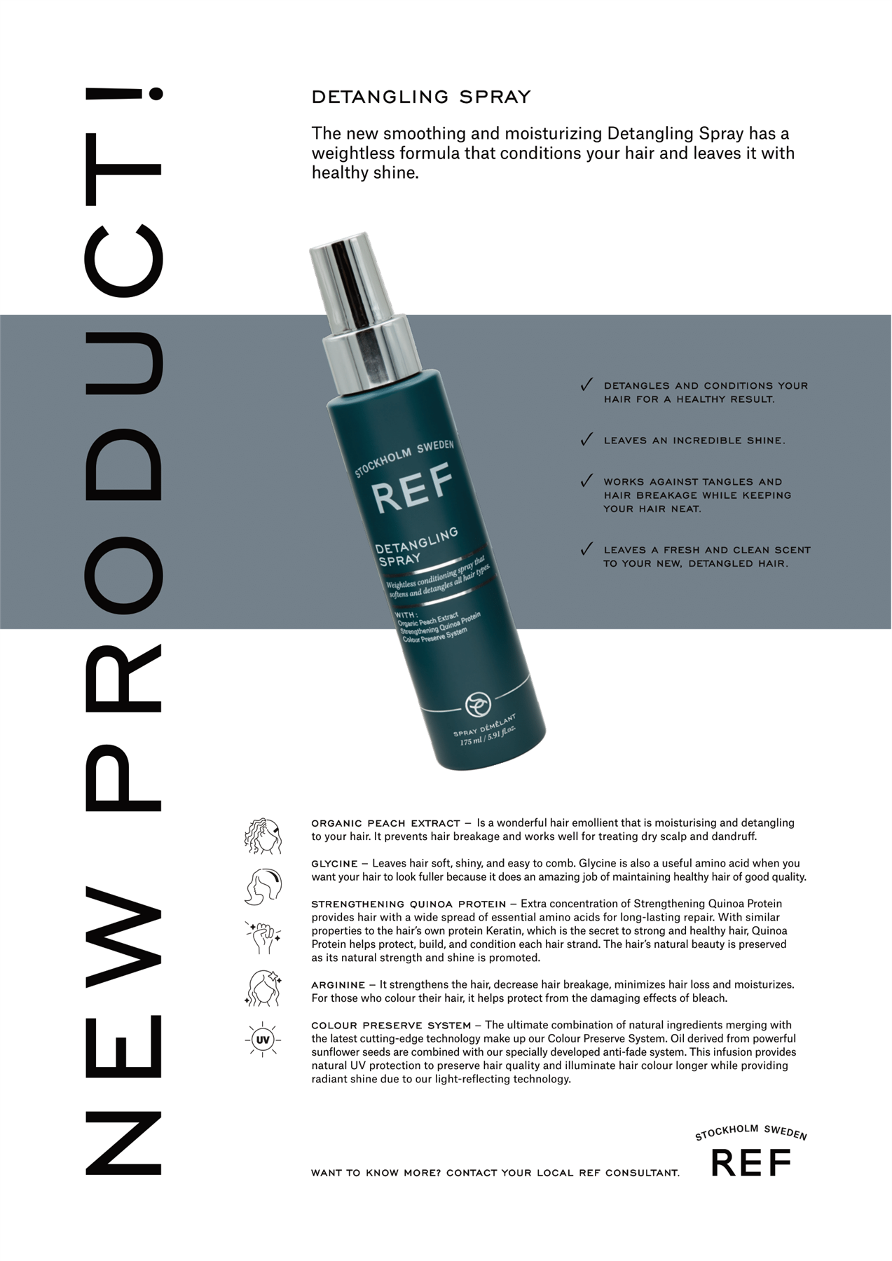 Aqua, Alcohol Denat., C13-15 Alkane, Cetearyl Alcohol, Phenoxyethanol, Parfum, Ethylhexyl Methoxycinnamate, Cetrimonium Chloride, Behentrimonium Chloride, Glycerin, Butylene Glycol, Dipropylene Glycol, Ethylhexylglycerin, Amodimethicone, Prunus Persica (Peach) Flower Extract, Helianthus Annuus Seed Extract, Sodium PCA, Polyquaternium-11, Quaternium-95, Sodium Lactate, Arginine, Trideceth-15, Trideceth-3, Aspartic Acid, PCA, Propanediol, Lactic Acid, Chenopodium Quinoa Seed Extract, Citric Acid, Glycine, Alanine, Serine, Sodium Benzoate, Valine, Threonine, Isoleucine, Proline, Phenylalanine, Histidine, BHT, Potassium Sorbate, Acetic Acid, Sorbic Acid, Pentaerythrityl Tetra-di-t-butyl Hydroxyhydrocinnamate, Alpha-Isomethyl Ionone, Limonene.